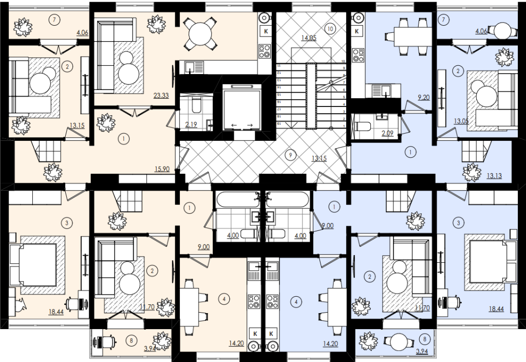 | 1 | Передпокій | 9 |